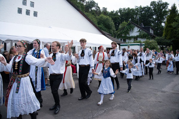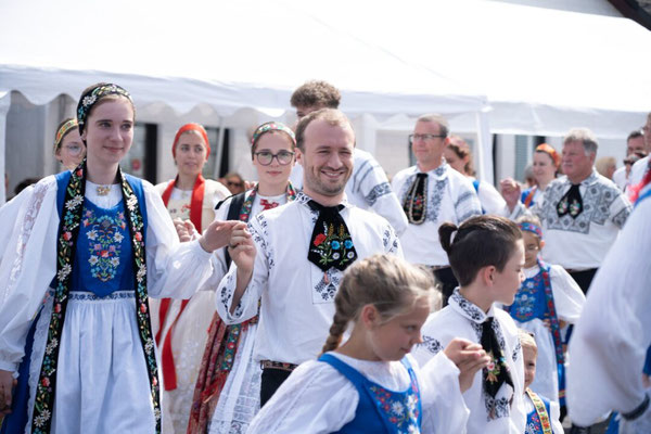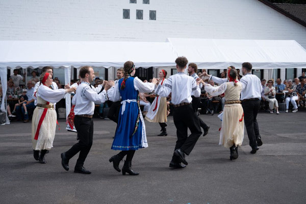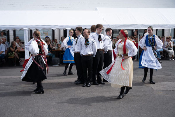 Anschließend präsentierten sich die vier Tanzgruppen, darunter selbstverständlich die jubilierende Kindertanzgruppe, mit mitreißenden Darbietungen in farbenfroher Tracht. Der Stolz auf die eigene Herkunft und die Freude am gemeinsamen Tanzen waren bei jedem Schritt spürbar.